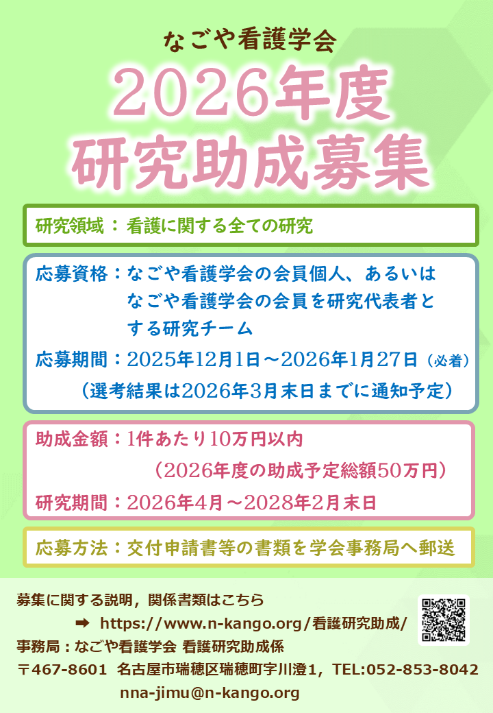 本件に関するお問い合わせは、メール件名を「看護研究助成」としてください。